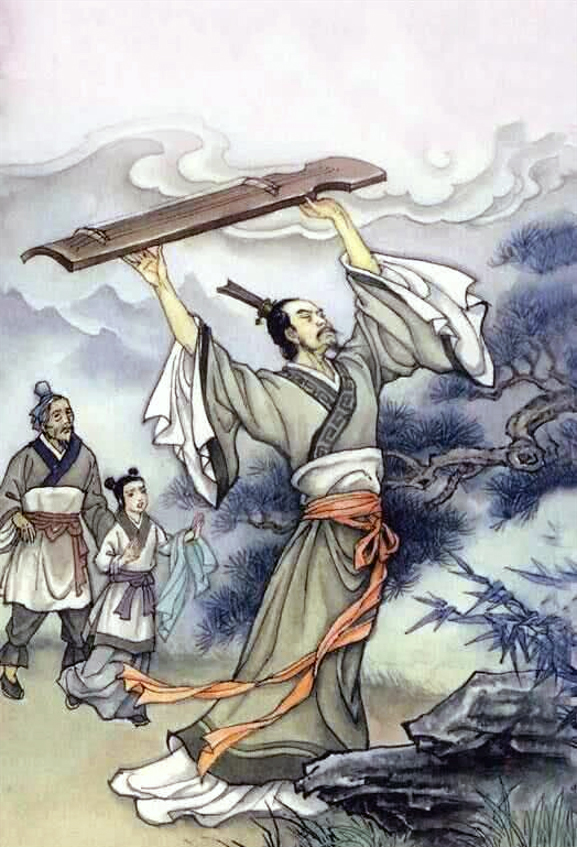 (知音锺子期离世,伯牙心悲,遂摔碎古琴,终身不再弹奏)
