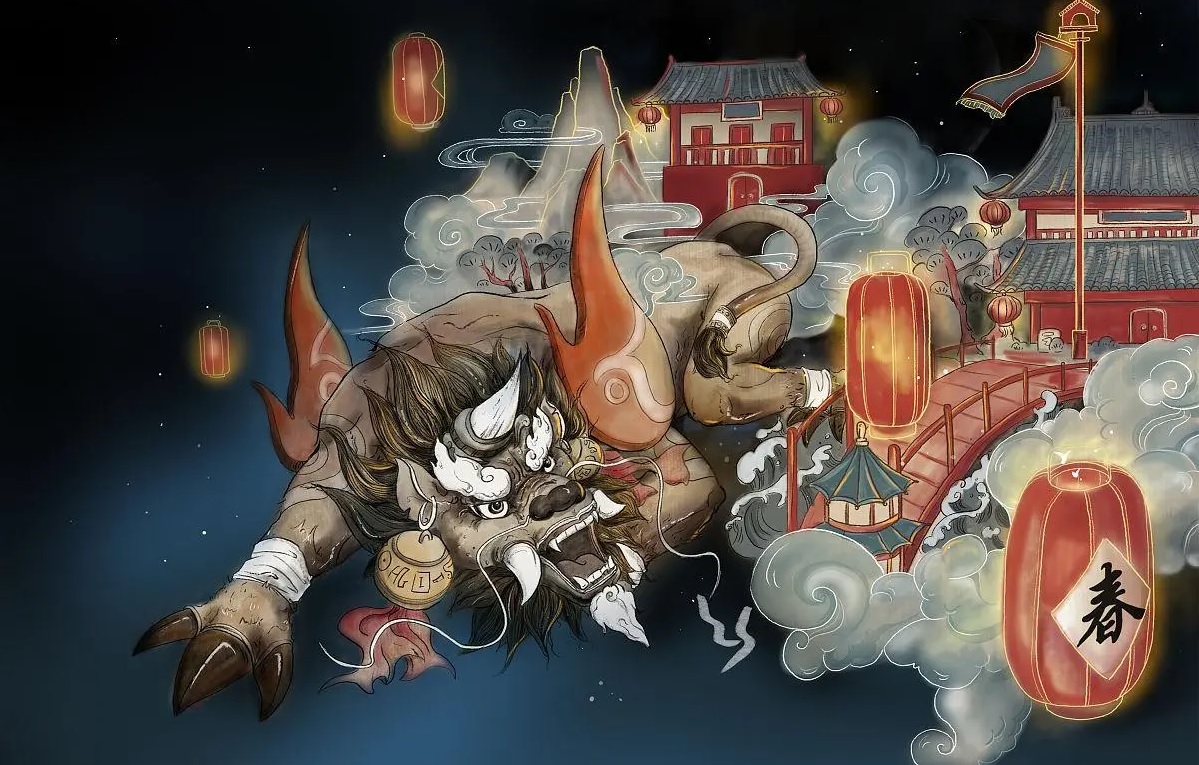 太古時期,有一種兇猛的怪獸,散居在深山密林中,人們管它們叫“年”。它的形貌可怕,生性兇殘,專食飛禽走獸、讓人談“年”色變。後來,人們慢慢掌握了“年”的活動規律,它是每隔三百六十五天竄到人群聚居的地方,而且出沒的時間都是在天黑以後。