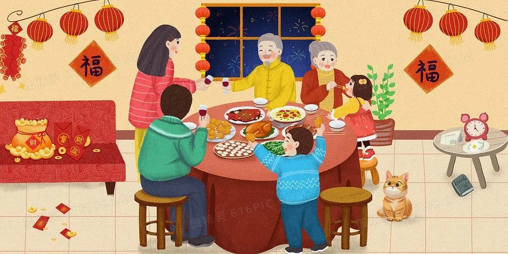 每到這一天晚上,每家每戶都提前做好晚飯,熄火淨灶,把雞圈牛欄全部拴牢後,躲在屋裡吃“年夜飯”。因是過“年關”的晚餐,所以置辦得很豐盛。除了要全家老小圍在一起用餐表示和睦團圓外,還須在吃飯前先供祭祖先,祈求祖先的神靈保佑,平安地度過這一夜。吃過晚飯後,誰都不敢睡覺,擠坐在一起閒聊壯膽。就逐漸形成了除夕熬年守歲的習慣。
